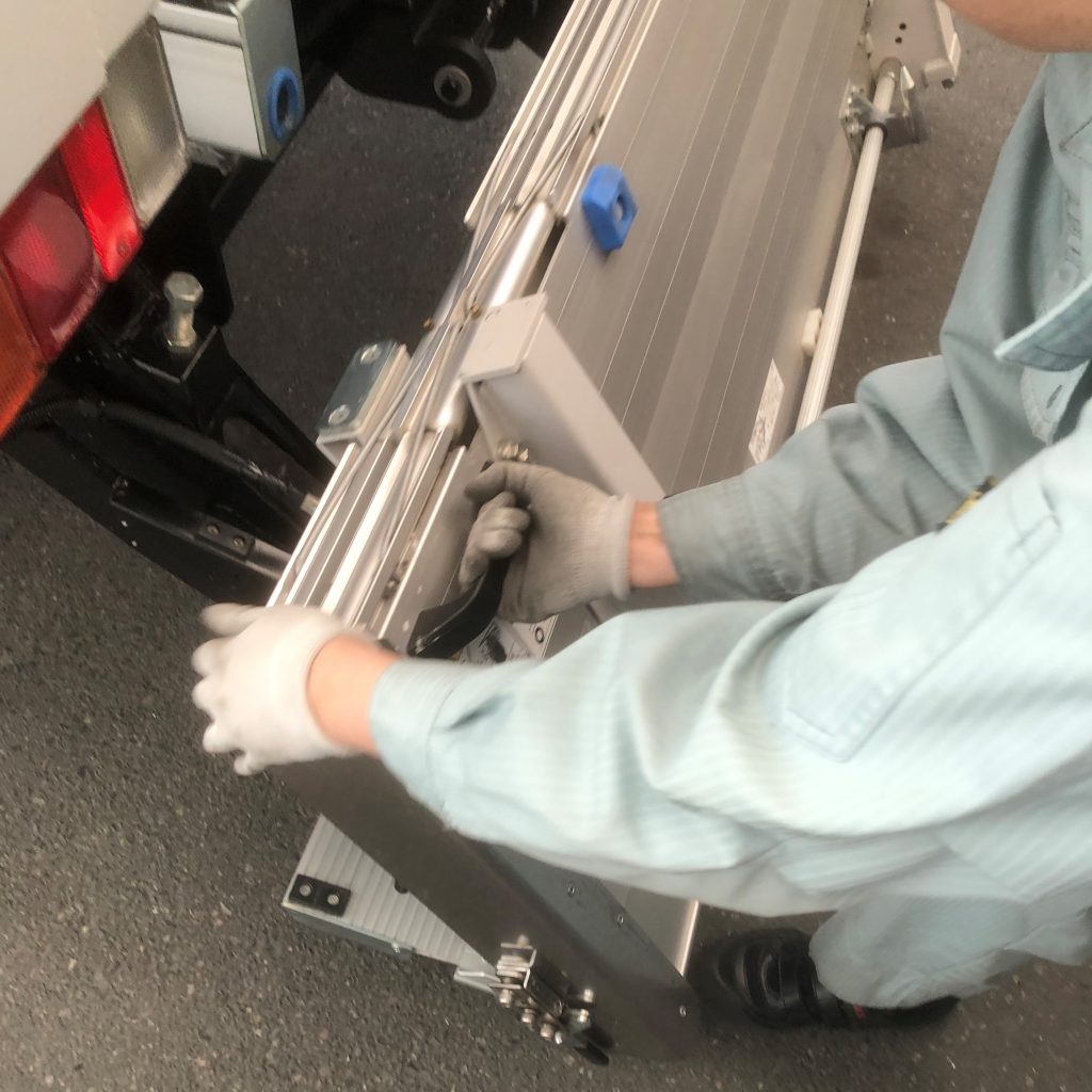 このトラックのパワーゲートは折り畳み式になっています。