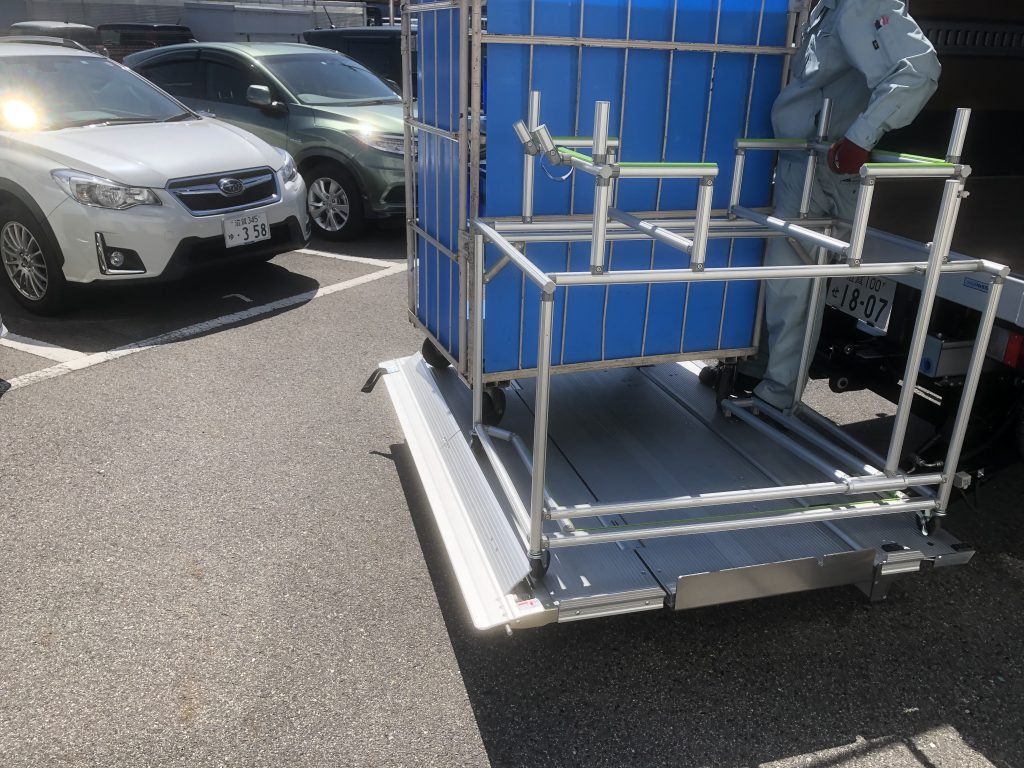 新しくする前のトラックはリフトが後部ドアにくっつく仕様の跳ね上げタイプを使用していたのですが…