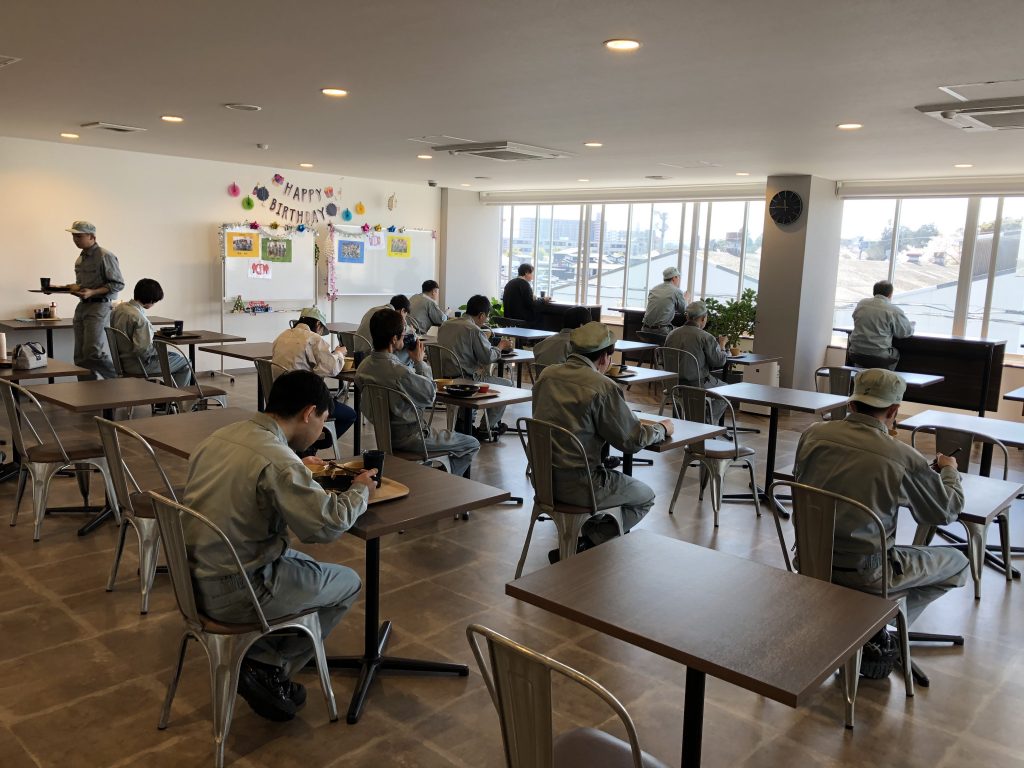 そして人が最も集まる食堂は座席数を大幅に減らし、座席間隔を空けて食事ができるようにレイアウトを変更し、使用を時間交代制にしました。