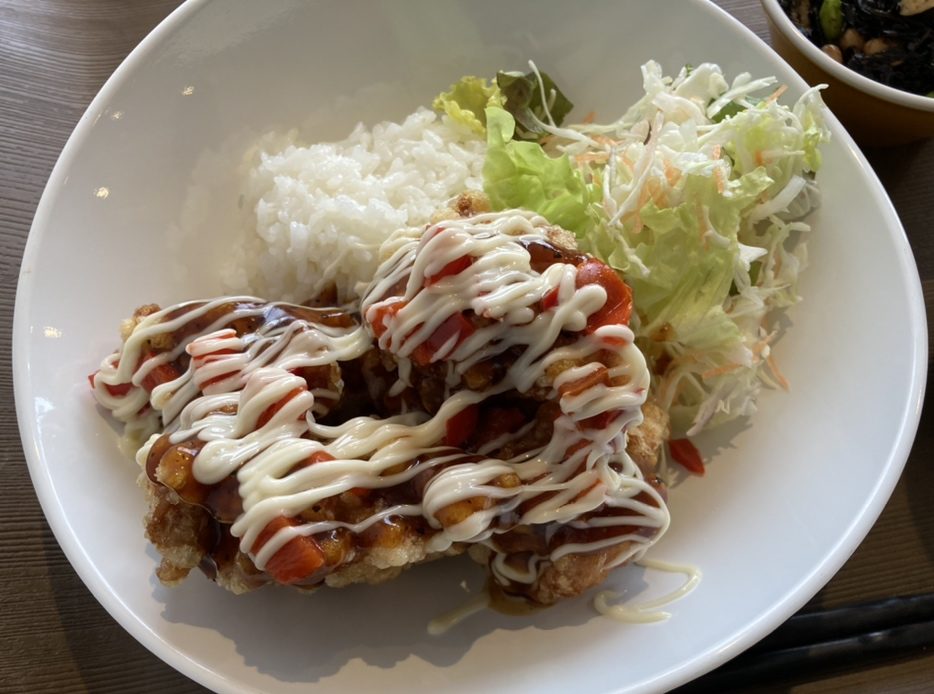 スパイシーブラマヨ唐揚げ丼です!