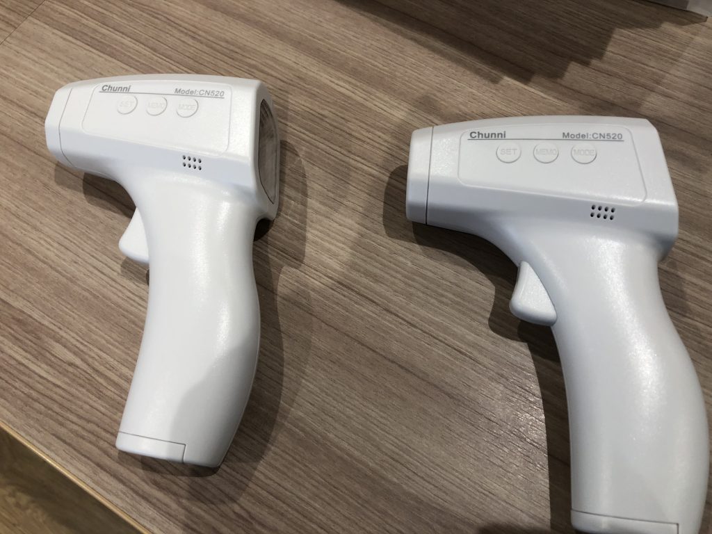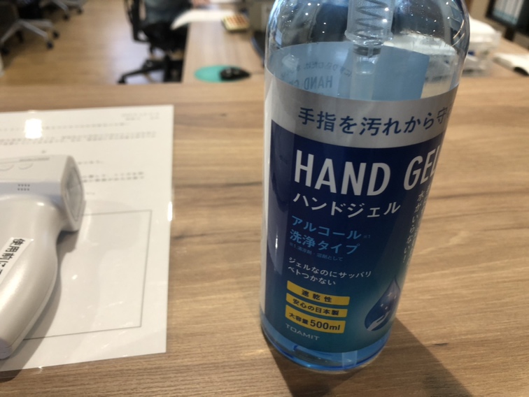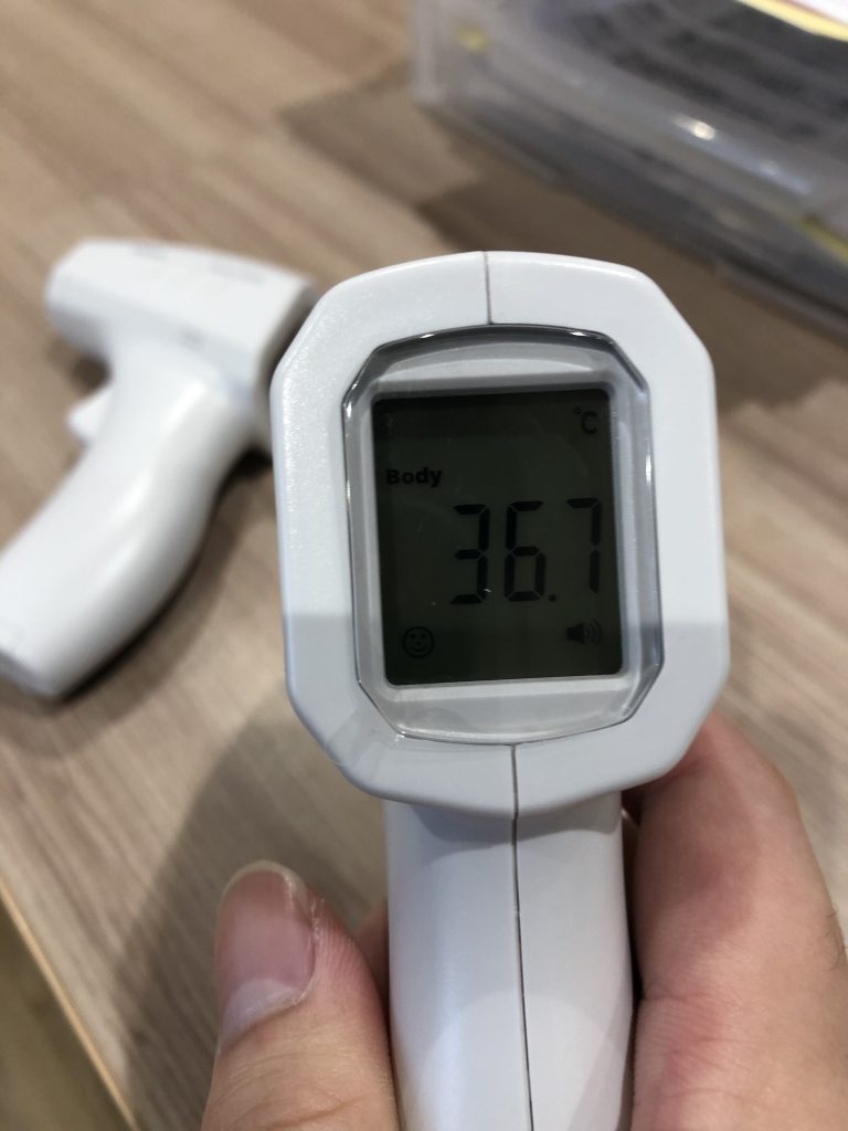 非接触タイプの体温計を導入し、出勤時に熱がないか確認するようにしました。